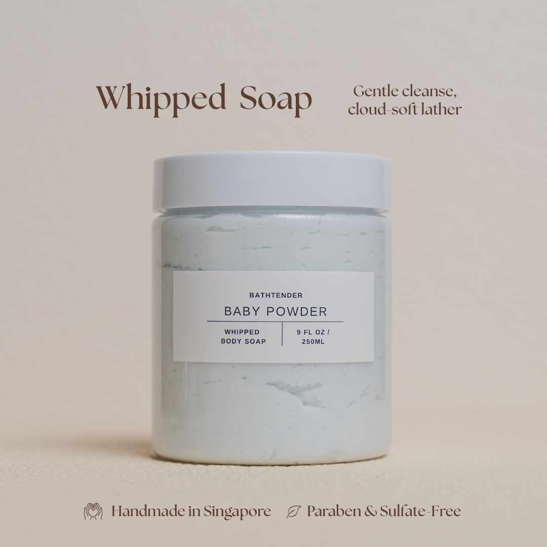 Whipped body soap that provides a gentle cleanse without stripping moisture from the skin. Enhanced with nourishing castor oil and mango butter for soft, hydrated skin after cleansing.